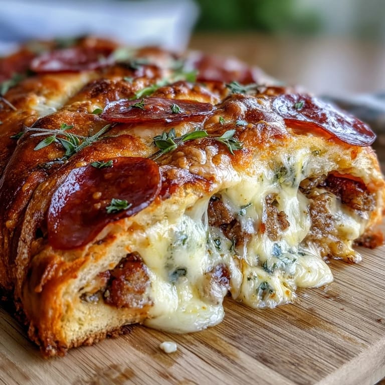 I've experimented with swapping the beef for ground turkey or chicken when I'm being gentler with myself, and honestly, it works beautifully—the pepperoni and cheese carry so much flavor that the leaner protein doesn't feel like a sacrifice. Sautéed bell peppers or onions tucked into the filling add moisture and texture, though I stick with the simpler version most of the time because it's what brings people back for seconds. The stromboli also freezes brilliantly either before or after baking, which means you can make it on a weekend and have dinner sorted for a busy night ahead.