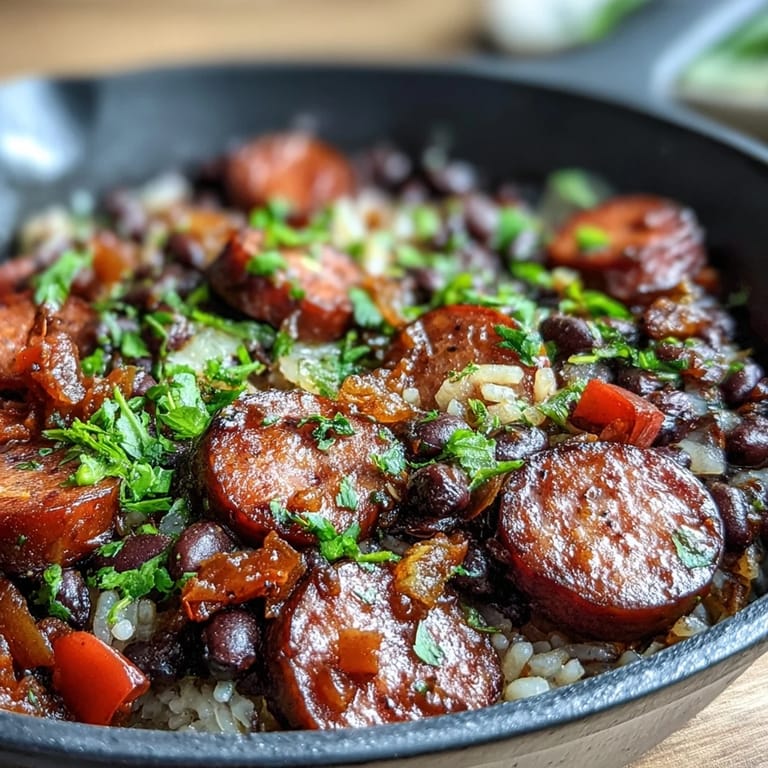 Andouille or kielbasa provide excellent smoky flavor. You can also use chorizo for extra spice, or substitute with turkey or vegetarian sausage for a lighter version.
