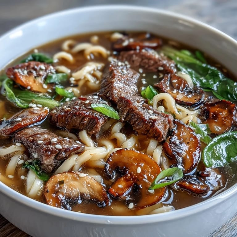 The broth includes low-sodium chicken or vegetable stock with soy sauce, miso paste, garlic, fresh ginger, and sesame oil for a rich, savory base.