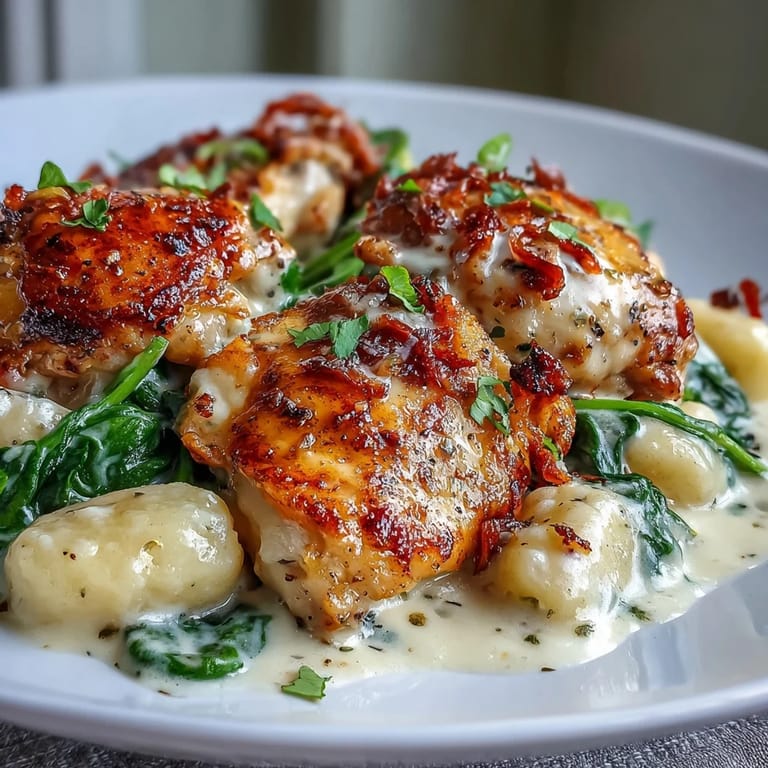 The beauty of cooking everything in one skillet is that each component picks up flavor from the last—the chicken seasons the oil, the oil carries that into the onion and garlic, and then the gnocchi toasts in all those accumulated flavors before you add the cream. It's like building a flavor tower where each layer supports the one on top of it, and by the time everything comes together, you've created something that tastes intentional and complete.