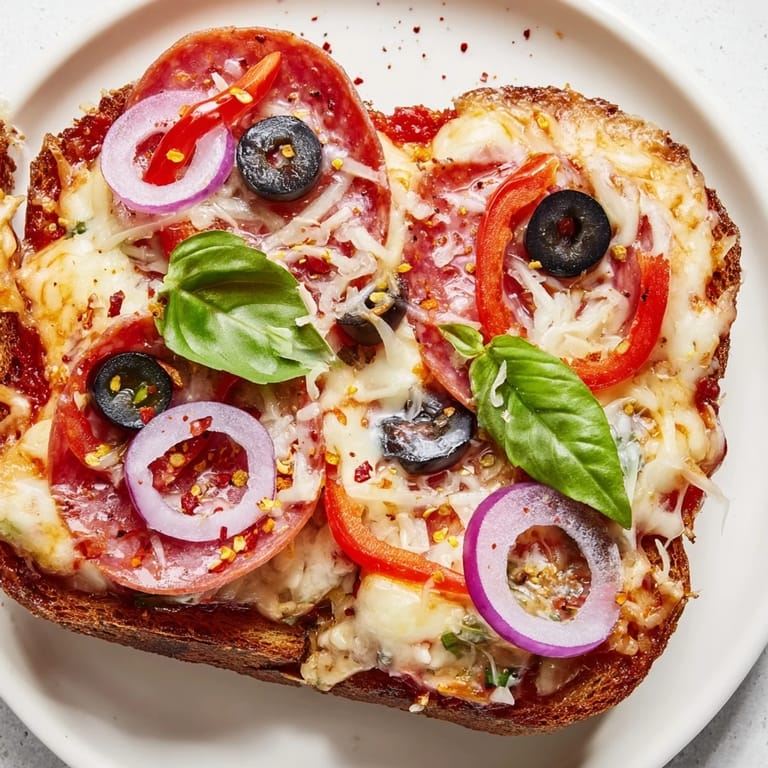 Pin It I discovered pizza toast by accident during a late-night kitchen experiment when I was too hungry to wait for actual pizza. Thick slices of sourdough, bubbling cheese, the kind that gets those gorgeous brown spots—suddenly I wasn't just making toast anymore. This version layers everything with intention: garlicky tomato sauce as the foundation, then cheese strategically placed so every bite has melty richness, finished under the broiler until it's basically pizza's cooler, faster cousin.