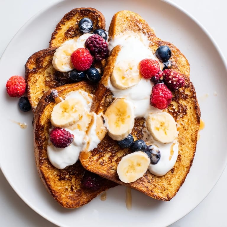 The beauty of protein French toast is that you can dress it up or down depending on what you need that morning. Some days I pile on fresh berries and a simple drizzle of maple syrup for something that feels celebratory, while other mornings I top it with a spoonful of almond butter and sliced banana for maximum staying power. The Greek yogurt topping is underrated; it adds creaminess and even more protein without any of the guilt.