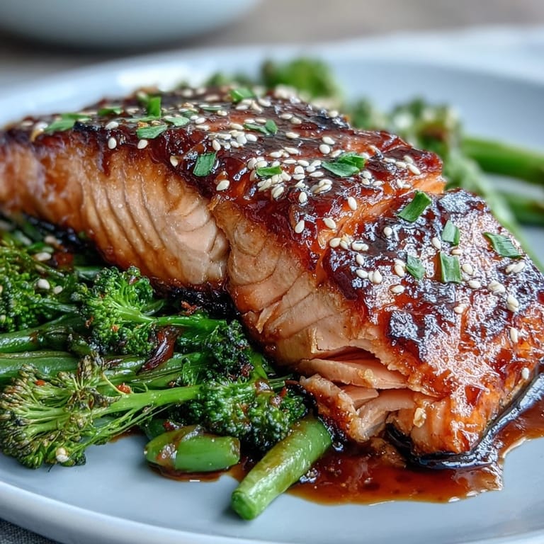 Pin It There's something almost meditative about watching salmon turn glossy under a brush of homemade teriyaki sauce while vegetables roast alongside it on a single pan. I discovered this recipe on a Tuesday evening when I had exactly 35 minutes before my sister arrived for dinner, armed with nothing but curiosity and a slightly wilted bunch of snap peas from the farmers market. The kitchen filled with the most incredible aroma—toasted sesame mingling with garlic and ginger—and by the time she walked through the door, I was already plating golden, caramelized salmon that flaked at the gentlest pressure of a fork. It became the dish I make when I want to feel like I've accomplished something without spending hours at the stove.