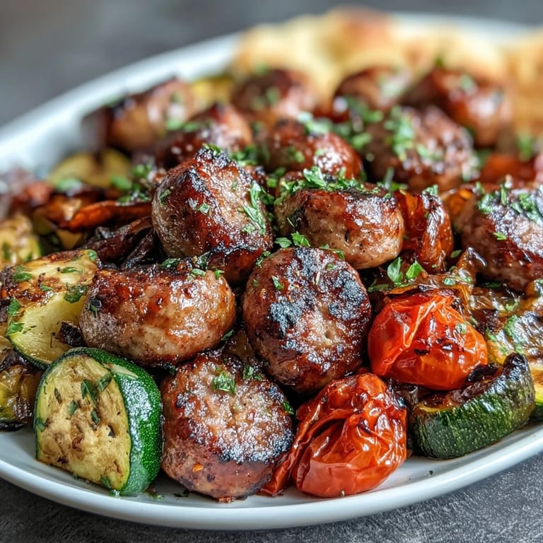 Pin It What I love most about this sheet pan dinner is how it transforms humble ingredients into something truly special. The colors are vibrant, the flavors are bold, and there's a wonderful interplay between the caramelized vegetables, smoky sausage, and soft, pillowy naan. It's the kind of meal that makes you slow down and appreciate each bite. And the best part? While you're savoring every mouthful, you can relish the fact that cleanup will be a breeze. This is comfort food reinvented for modern, busy lives—without sacrificing an ounce of flavor.
