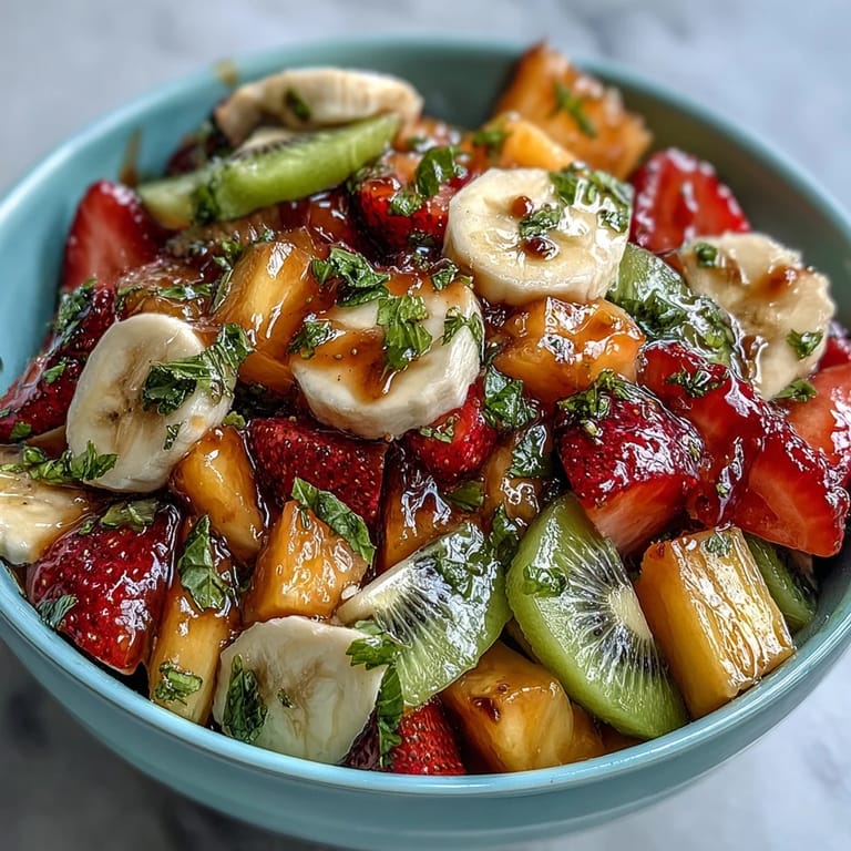 Pin It My neighbor showed up at my door one sweltering afternoon with a bag of mangoes so ripe they practically fell apart in your hands, and somehow we ended up making this salad together while standing in front of an open freezer. She kept insisting that tropical fruit needed nothing fancy, just lime and mint and a little honey to make everything sing. That casual kitchen conversation stuck with me, and now whenever I need something that feels both celebratory and effortless, this is what I reach for.